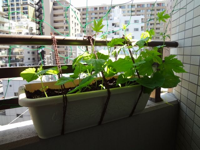2014/06/14 Category : 住 五代目ゴーヤ 例によって、東向きの寝室は早朝から太陽いっぱいで、寝坊が出来ない季節がやってきました。いよいよゴーヤの出番です。5年前に自然食品店で購入したゴーヤの種を毎年取っては、緑のカーテンに仕立てています。今年で五代目。代を重ねるごとに実は小さくなり、すでに食べることはあきらめ、緑のカーテンの効果だけを期待しています。いつまでこのゴーヤの一族が続いてくれるのかわかりませんが、今年も元気に芽を出してくれました。 野口