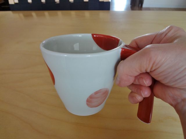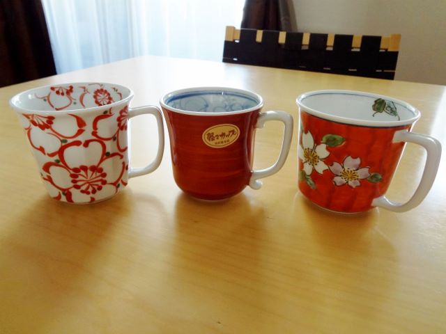 2013/03/17 Category : 食 食器その3 食器の第3弾です。最近は湯飲み茶碗が持ちにくく、お茶でも水でもすべてマグカップを使っています。当然マグカップも重いものは持てません。大抵通常のマグカップの重さは200グラム以上はありますが、この超軽量マグカップは、小ぶりな真ん中のカップで120グラム、両側の大きめな2つは140グラム。最近新しいものを買いました。もう5代目くらいでしょうか。これしか使えなくなっています。有田焼や波佐見焼の陶器です。こちらは取っ手が持ちやすいマグカップ。(重さは200グラム)前回ご紹介した取っ手付き汁椀のほか、スープはこのカップ(有限会社エダクラフト)でいただいています。取っ手があるところがとても使いやすいですし、木製ですので、スープが冷めにくいところもすぐれものです。障がい者用とか自助具としてつくられたものでないのが良いですね。